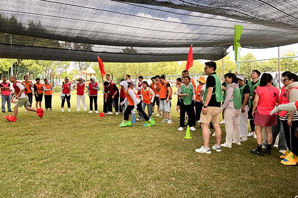 上午,團建活動在輕松愉悅的氛圍中拉開帷幕。現場設置了多線拔河套圈、套大鵝、大腳接力等豐富多彩的趣味項目。多向拔河,各隊隊員齊心協力、奮勇拼搏,口號聲、加油聲此起彼伏,充分展現了團隊的凝聚力和戰斗力;套“大鵝”,大家全神貫注,瞄準目標,每一次成功套中都引來陣陣歡呼;大腳接力則考驗著隊員之間的默契與協作,大家你追我趕,現場氣氛熱烈非凡。這些活動不僅讓同事們在緊張的工作之余得到了放松,更增進了彼此之間的了解與信任,為今后的工作協作奠定了良好的基礎。