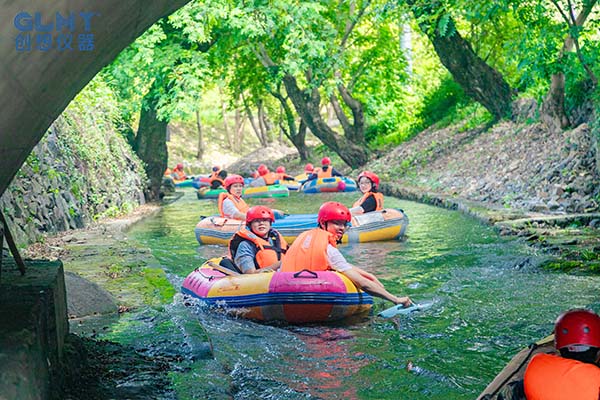 漂流過程中,河道蜿蜒曲折,水流時而平緩,時而湍急。大家乘坐著皮筏艇順流而下,感受著大自然的清涼與愜意。不過,對于創想儀器的員工們來說,漂流只是“前奏”,打水仗才是這場活動的“重頭戲”。大家紛紛拿起水槍、水瓢,向身邊的人發起“攻擊”,一時間,水花四濺,歡聲笑語回蕩在整個山谷。無論是領導還是員工,都沉浸在這歡樂的氛圍中,忘卻了工作的壓力和疲憊。
